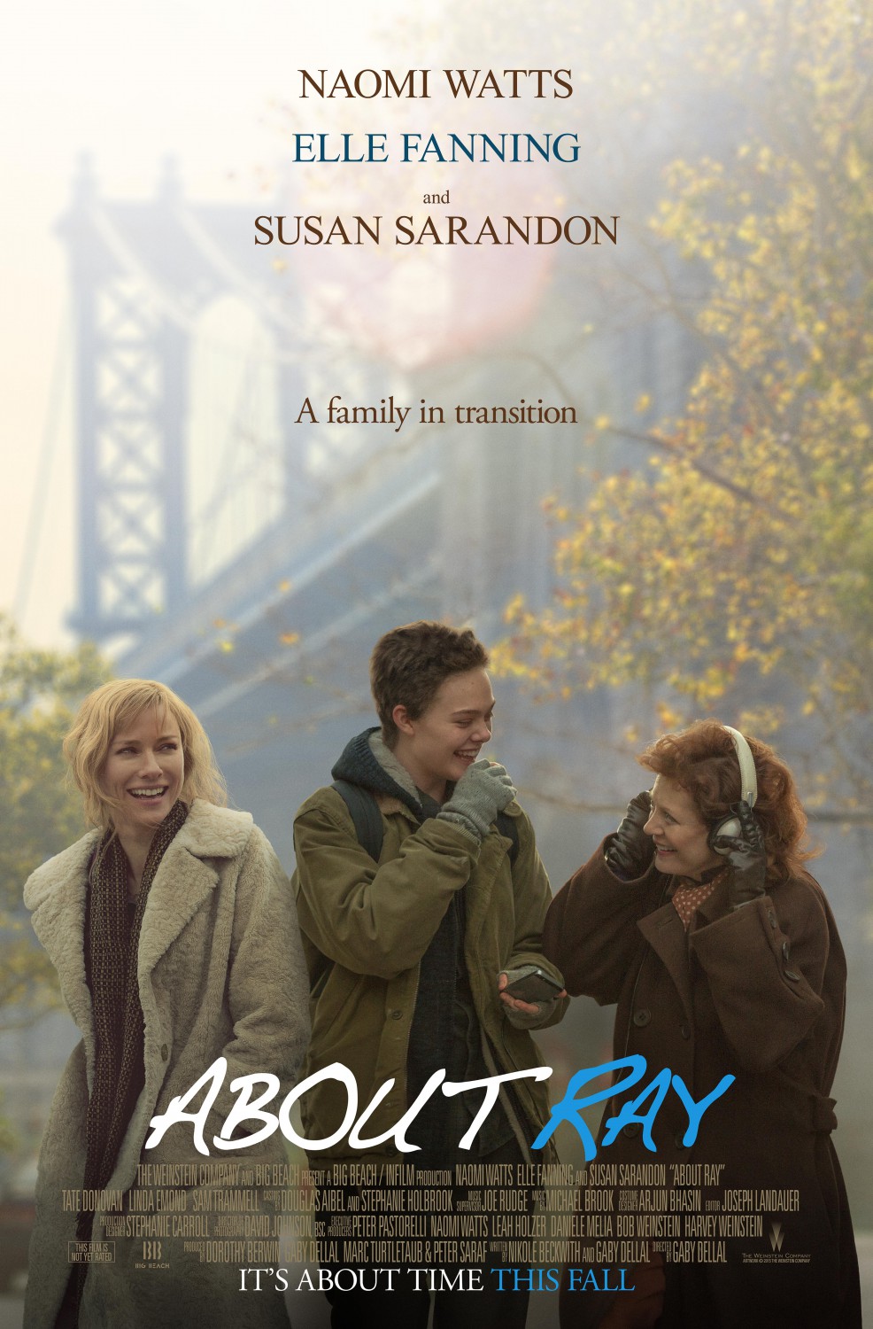 El drama independiente “About Ray” (Conociendo a Ray) es protagonizado por Elle Fanning como una joven transgénero, también protagonizan la cinta Naomi Watts y Susan Sarandon. Dirigida por Gaby Dellal la cinta cuenta con un guion de Nikole Beckwith.